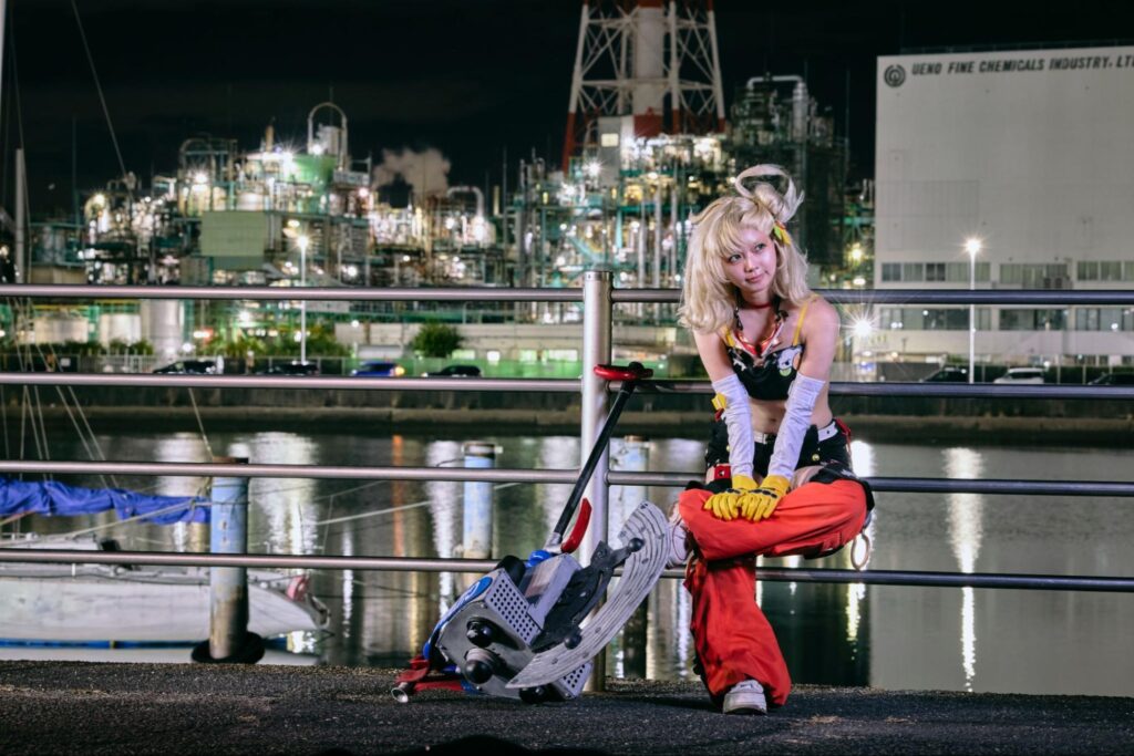工場群の幻想的な光に包まれながら、コスプレイヤーとカメラマンが夜景撮影を楽しむ、地域連携型の特別企画です。