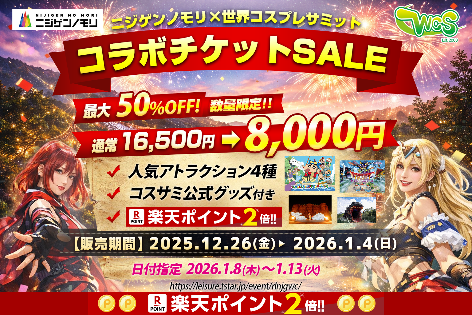 【ニジゲンノモリ×世界コスプレサミット】 数量限定!ニジゲンノモリで使えるコラボチケット発売のお知らせ