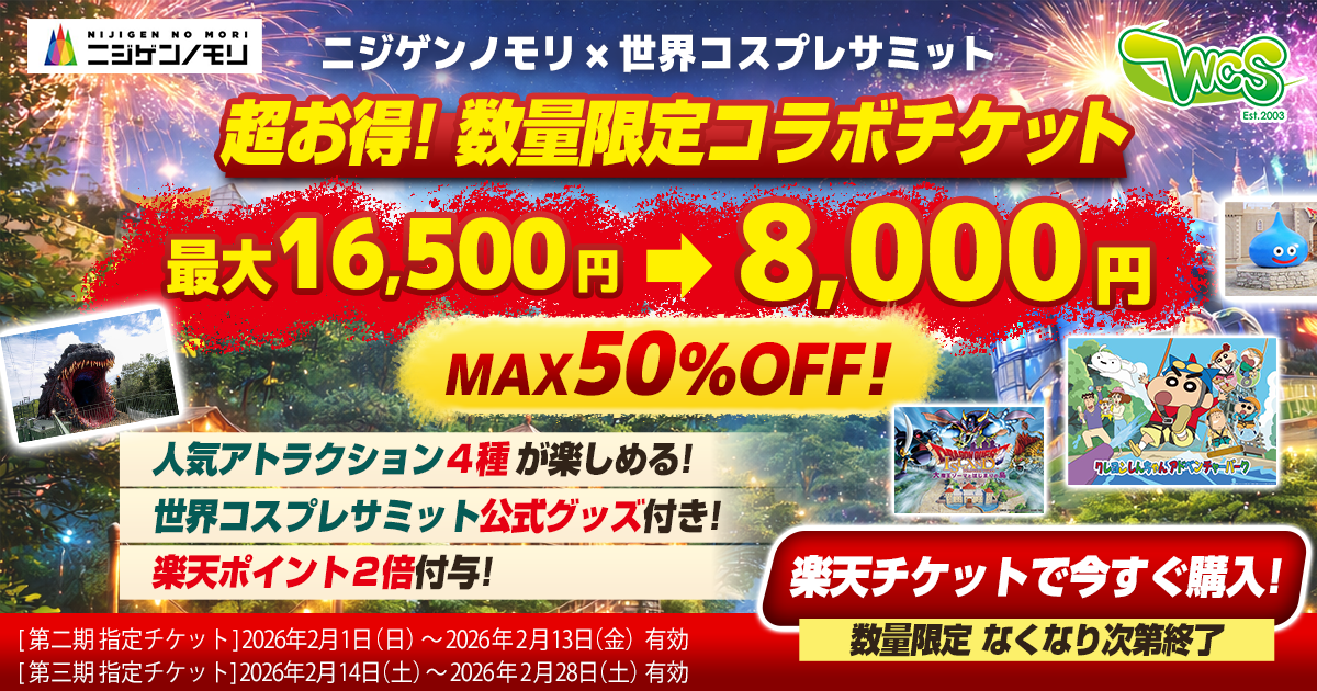 【第二弾・第三弾 ニジゲンノモリ×世界コスプレサミット】 数量限定!ニジゲンノモリで使えるコラボチケット発売のお知らせ